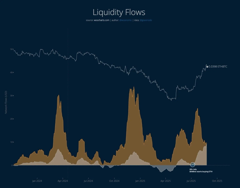 On the 27th (local time), cryptocurrency analyst Willy Woo stated on X (formerly Twitter), "Capital is moving from Bitcoin to Ethereum," adding that "Ethereum's daily capital inflow is around $900 million, catching up with Bitcoin."