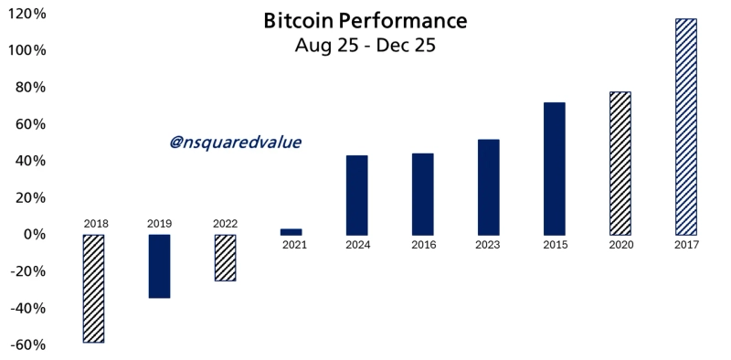 On the 27th (local time), Timothy Peterson, a crypto (cryptocurrency) analyst, said on X (formerly Twitter), "Bitcoin could reach $160,000 by the end of this year," adding, "Historically, Bitcoin has shown an upward trend with a 70% probability during the four months before Christmas." The average price increase rate was found to be about 44%.