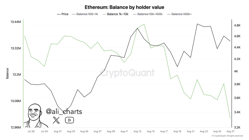 On the 31st (local time), Ali Martinez, a crypto (cryptocurrency) analyst, said on X (formerly Twitter), "Whales sold 430,000 ETH over the past two weeks," adding, "This is about $1.8 billion."