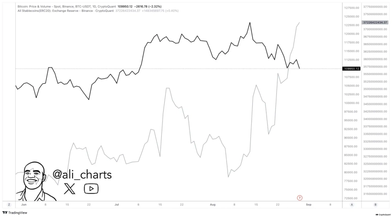 On the 31st (local time), cryptocurrency analyst Ali Martinez said on X (formerly Twitter), "Exchange stablecoins surged by $7 billion this month," and said, "This shows that investors are withdrawing funds from cryptocurrencies and holding them in Tether."