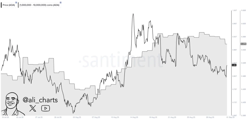 Last week, whales were reported to have sold 30 million Cardano (ADA).