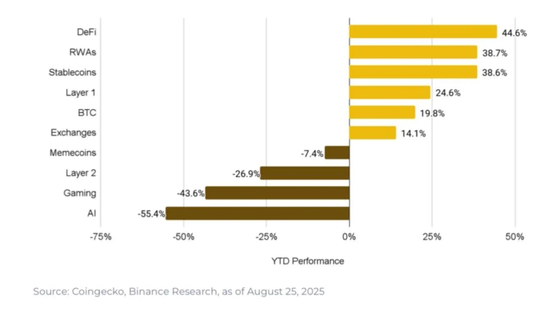 Meanwhile, the market sizes of stablecoins and Layer 1 have grown by 38.6% and 24.6%, respectively.