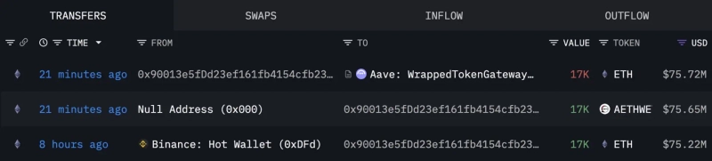 - Two recently created wallets withdrew 34,000 ETH from Binance and then deposited it into Aave(Aave).