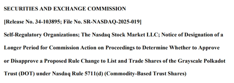 SEC delays review deadline for Grayscale Polkadot spot ETF by 60 days…final deadline November 8
