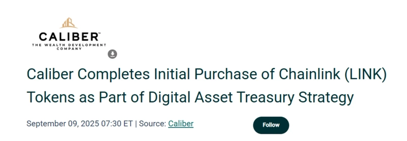 - Nasdaq-listed company Caliber has reportedly started purchasing Chainlink (LINK).