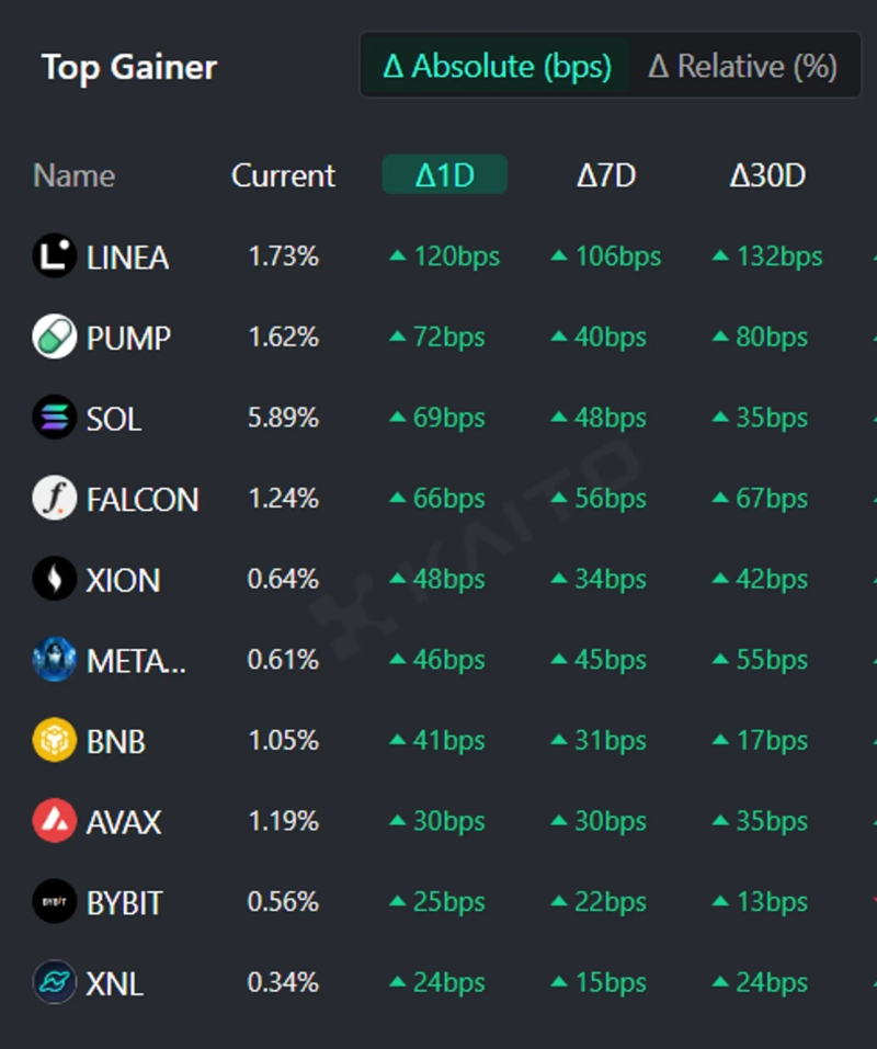 - Linea fell 23.83% recently despite listings on major exchanges and the launch of Binance perpetual futures, while Pumpdotfun rose 15.33% due to a large buyback.