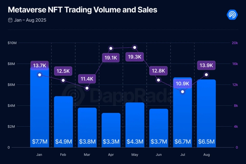 On the 12th (local time), DappRadar said on X, "NFT sales within the metaverse in August increased by 27% month-on-month. Users are gradually returning to virtual worlds."