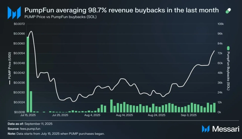 On the 13th (local time), Messari analyst Matthew Nei said on X, "PumpDotFun rose 56% over the month of August. This is an effect of executing revenue buybacks averaging 98.7% over the same period," he assessed.