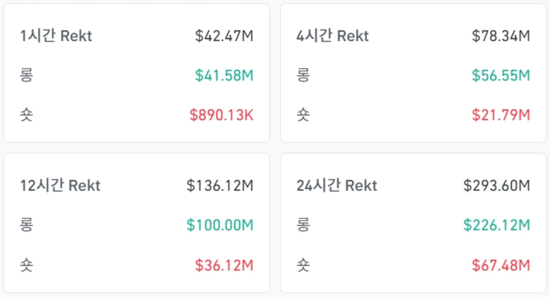 According to CoinGlass data on the 15th (local time), a total of 293.6 million dollars worth of futures positions were liquidated in the virtual assets market over the past 24 hours. Specifically, long positions worth 226.12 million dollars were liquidated, and short positions worth 67.48 million dollars were liquidated.