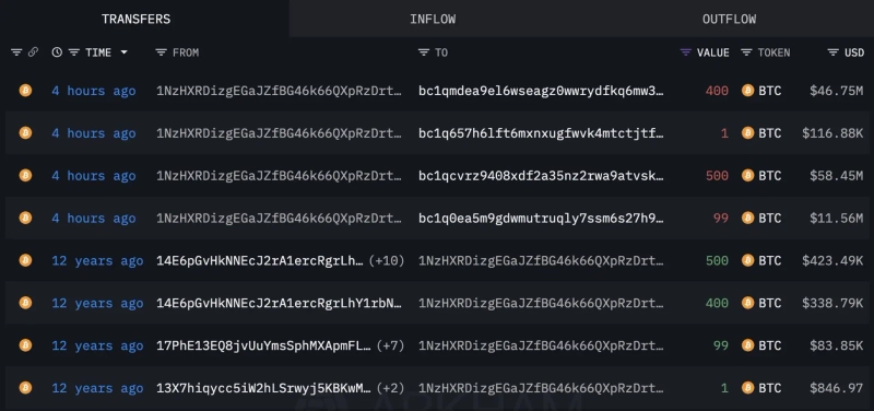 On the 17th (local time), on-chain analytics firm Lookonchain said on X (formerly Twitter), "Dormant whale wallet address '1NzH…DrtpZo' transferred the 1000BTC it held to four new addresses." The wallet is reported to have been inactive for over 11 years since receiving 1000 Bitcoins in January 2014.