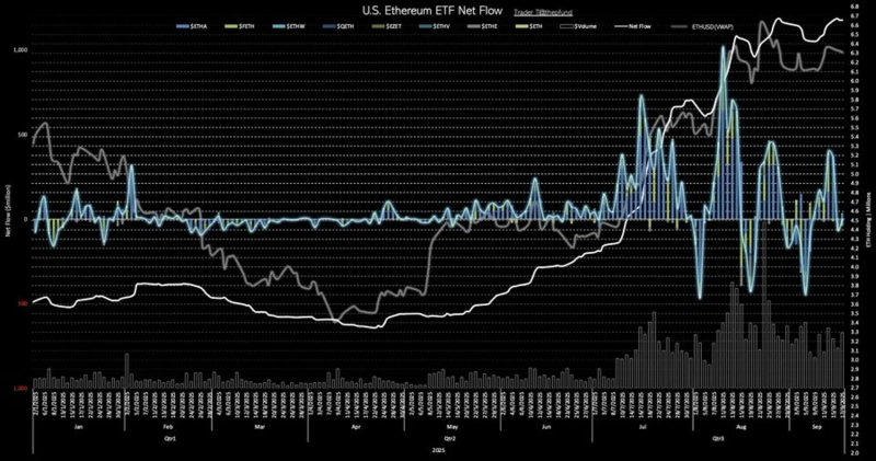 On the 18th (local time), according to TraderT, a total of $1.97 million (about 2.7 billion won) flowed out of U.S. spot Ethereum ETFs the previous day. This is the second consecutive trading day of net outflows.