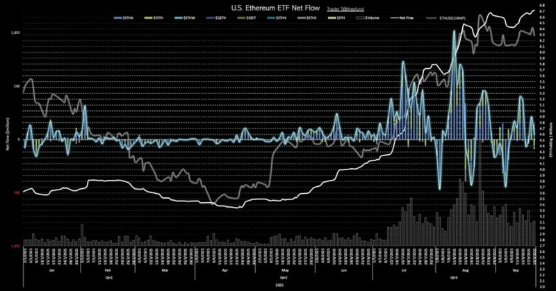 On the 20th (local time), according to Trader T, U.S. spot Ethereum ETFs posted $48 million in net inflows (about 67.1 billion won) the previous day. This marks net inflows for two consecutive trading days.