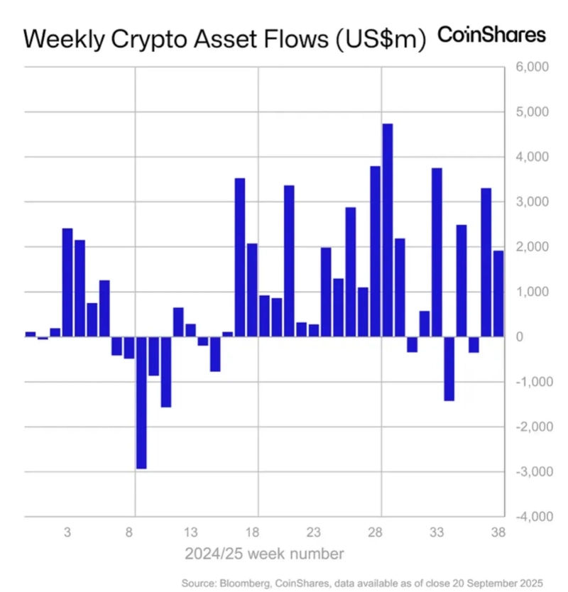 Global crypto investment products saw a net inflow of $1.9 billion last week