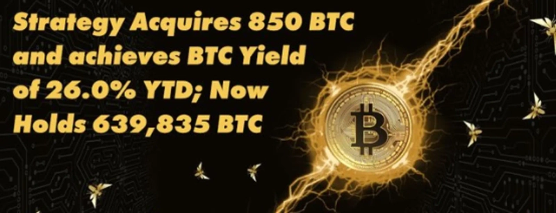 On the 22nd (local time), Michael Saylor, founder of MicroStrategy, said through X (formerly Twitter), "MicroStrategy bought an additional 850 BTC ($99.7 million)," adding, "the purchase price per BTC was about $117,344." He added, "It achieved a 26% year-to-date return."