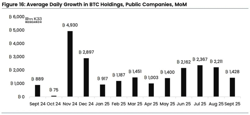 This September, Bitcoin (BTC) accumulation firms were reported to have bought an average of 1428 BTC per day.