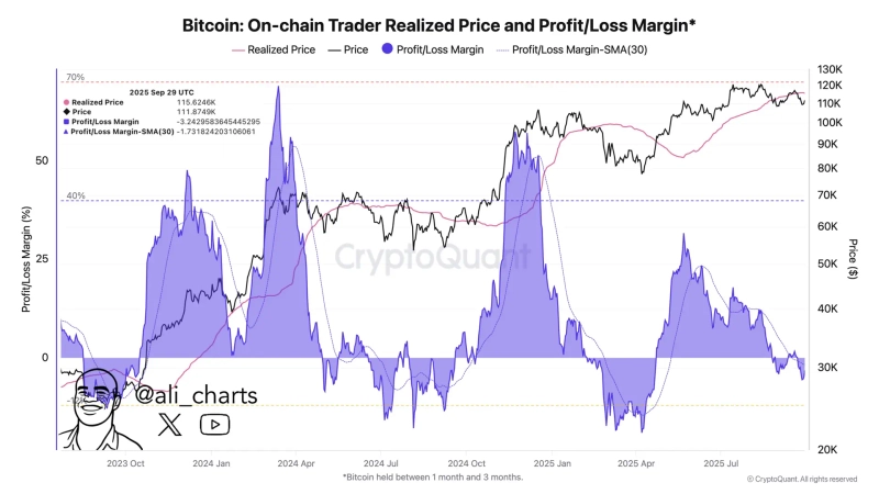 On the 30th (local time), Ali Martinez, a cryptoasset (cryptocurrency) analyst, said on X (formerly Twitter), "Over the past two years, Bitcoin correction phases have ended when traders' realized losses reached -12%," adding, "Currently it is only around -3.5%, so the correction may continue."