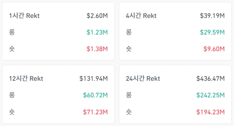 Over the past 24 hours, the position liquidation volume in the perpetual futures market for virtual assets (cryptocurrencies) was recorded at 436,470,000 dollars.