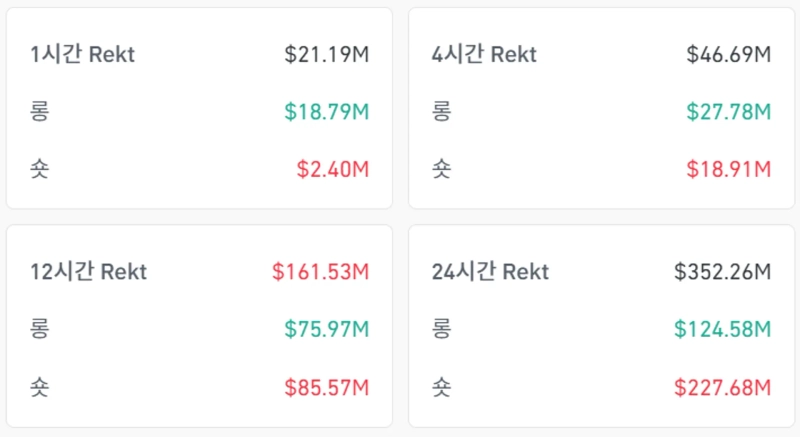According to CoinGlass data on the 7th (local time), a total of $352,260,000 worth of futures positions were liquidated in the crypto market over the past 24 hours. Specifically, $124,580,000 in long positions were liquidated, and $227,680,000 in short positions were liquidated.