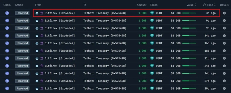 On the 11th (local time), according to Onchain Lens, according to the stablecoin issuer, Tether (USDT) issued an additional 1 billion USDT on the Ethereum network.