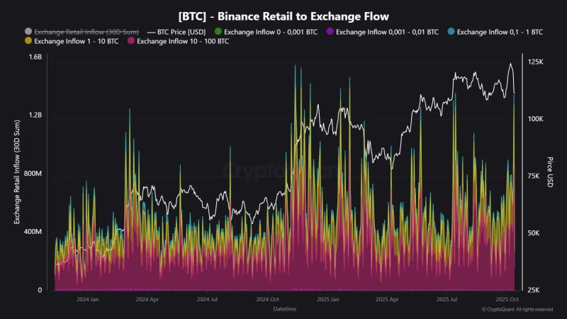 The report added, "Recent surges in retail deposits of similar scale over the past year coincide with major price volatility moments such as March 5, 2024 ($1.286 billion), November 12, 2024 ($1.581 billion), and January 20, 2025 ($1.408 billion). This indicates that retail investors' capital flows tend to 'follow' market direction rather than 'predict' it."
