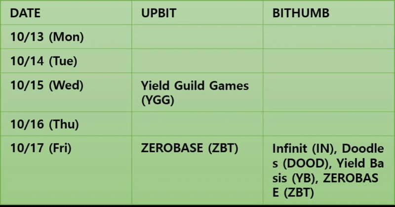 Bithumb listed Infinite, Doodles, Yield Basis, and ZeroBase.