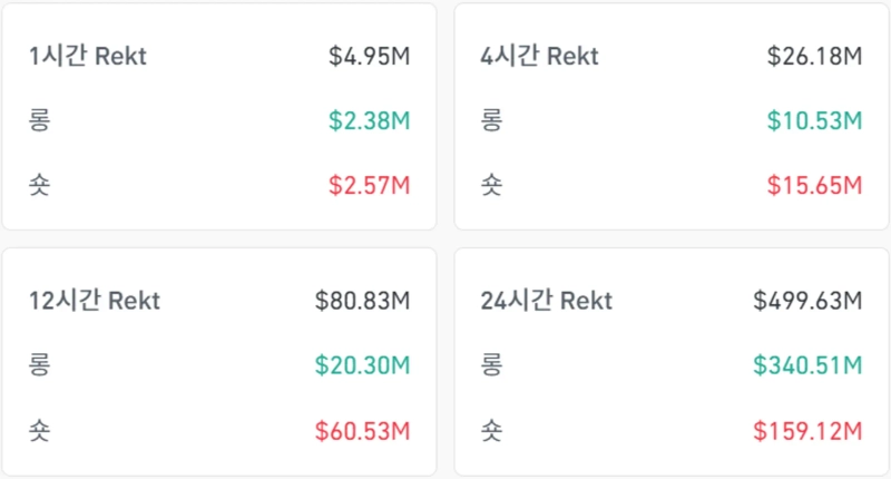 According to CoinGlass data on the 23rd (local time), a total of $599.63 million worth of futures positions were liquidated in the crypto asset market over the past 24 hours. Specifically, long positions worth $340.51 million were liquidated, and short positions worth $159.12 million were liquidated.