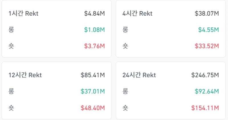 On the 23rd (local time), according to CoinGlass data, a total of $246.75 million in futures positions were liquidated in the crypto market over the past 24 hours. Specifically, $92.64 million in long positions were liquidated, and $154.11 million in short positions were liquidated.