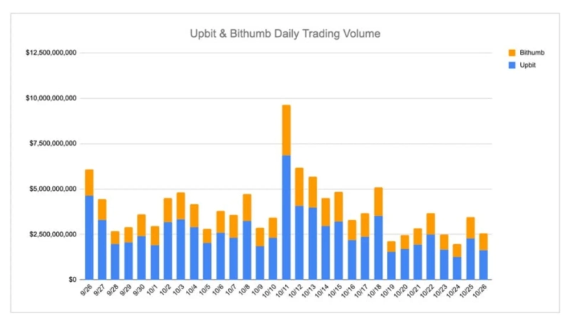 Daily volumes on both exchanges ranged between USD 3 billion and USD 9 billion, and on October 10 they briefly surged past USD 10 billion before adjusting over the following days. Upbit consistently recorded a high share of total volume, reaffirming its dominant role in Korea's spot trading market and its central role in expanding domestic market liquidity.