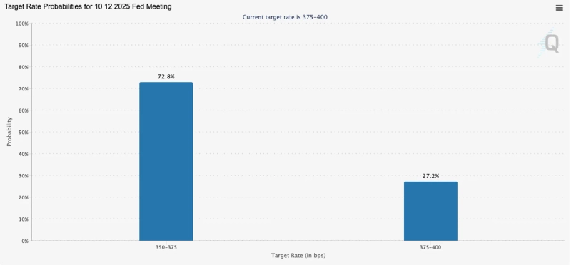 According to the CME FedWatch, as of 1 PM that day, the rate futures market lowered the probability of a December rate cut from the previous 90% range to 72.8%. Meanwhile, the chance of a hold rose to 27.2%, up sharply from 9.1% previously.